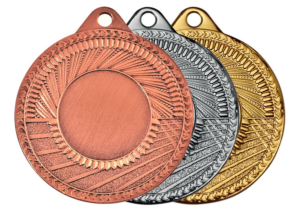 Kovová medaila o Ø 50 mm v troch základných farbách, zlatej, striebornej a bronzovej s priestorom na emblém o Ø 25 mm. Priestor na emblém na zadnej strane o Ø 46 mm.