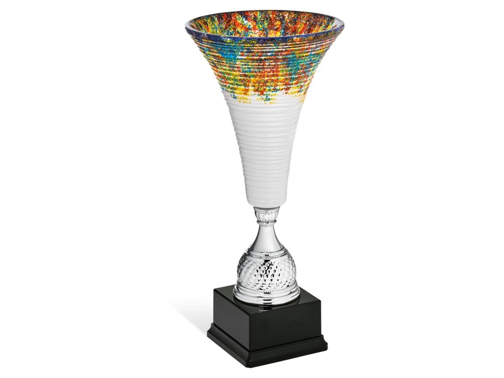 Keramický pohár s plastovou stopkou na plastovom podstavci.